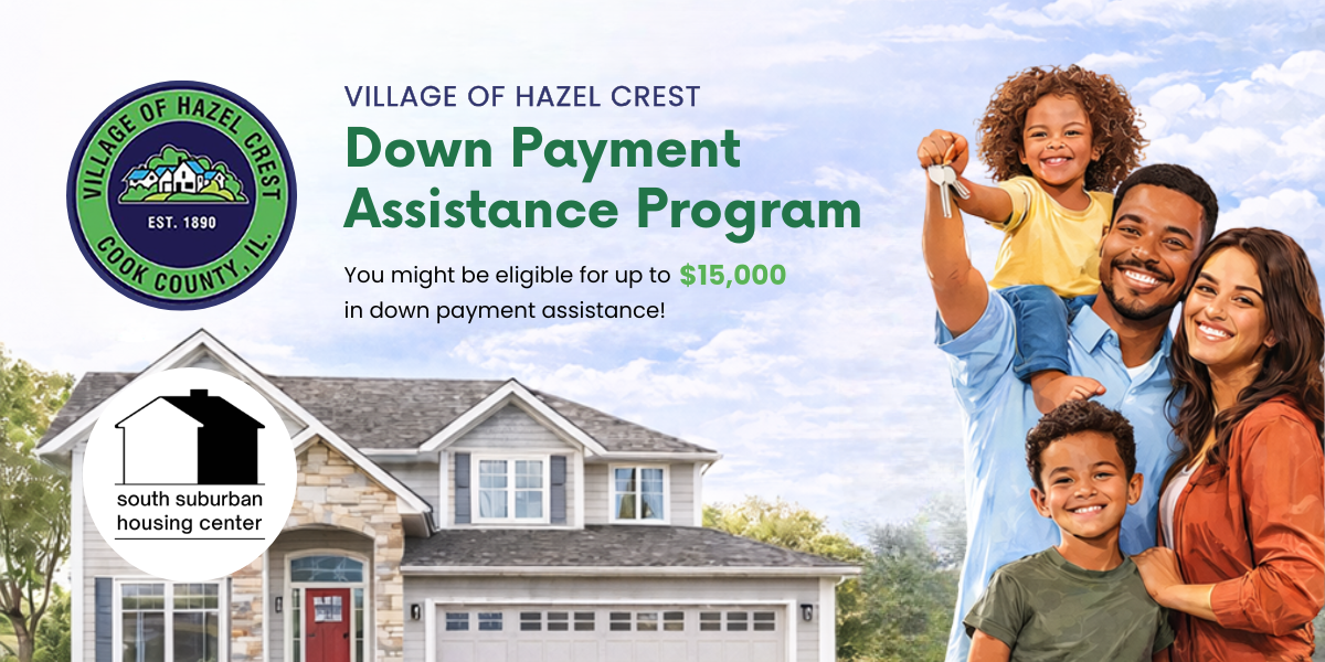 You could be eligible for up to $15,000 in down payment assistance from the Village of Hazel Crest. South Suburban Housing Center is happy to partner with Hazel Crest to administer this program’s application, counseling, and education.